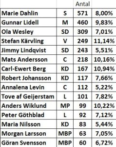 I de andra partierna har personrösterna inte haft denna stora betydelse, men det är ändå intressant att se vilka kandidater väljarna ”föredrar”.