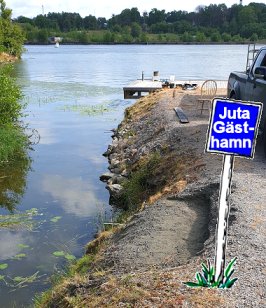 Davidsson ska kanske sätta upp en skylt vid vattnet – “Juta Gästhamn”… Då kanske Länsstyrelsen godkänner hans strandskyddsdispens också. Och sedan kan Davidsson få ha några utemöbler på sin gräsmatta… Som kanske då också får klippas…